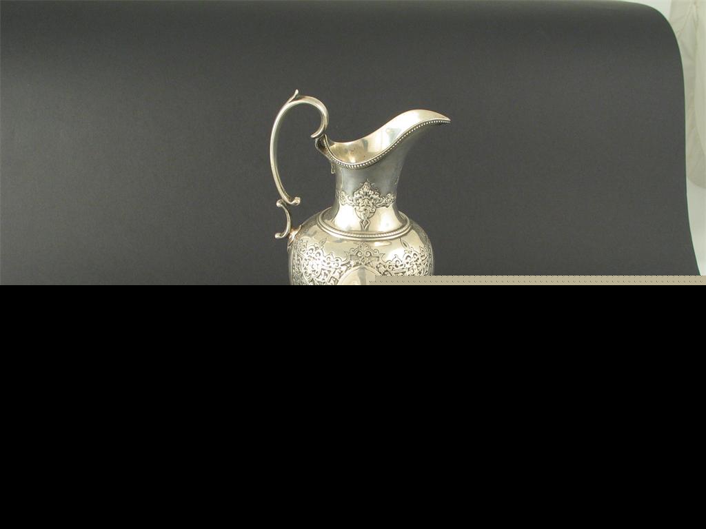 A Victorian vase shaped cream jug, with chased reserves and bead border, by R Martin and E Hall, London, 1872, 6.6in (17cm), 7oz.