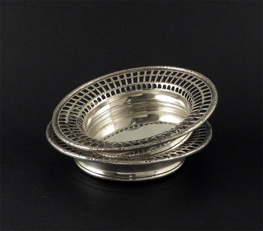 A pair of modern pierced coasters, with everting rims, by Davis Duff (of Glasgow), with Birmingham hallmarks, 1937, 4.5in (12.5cm), 6oz (2).