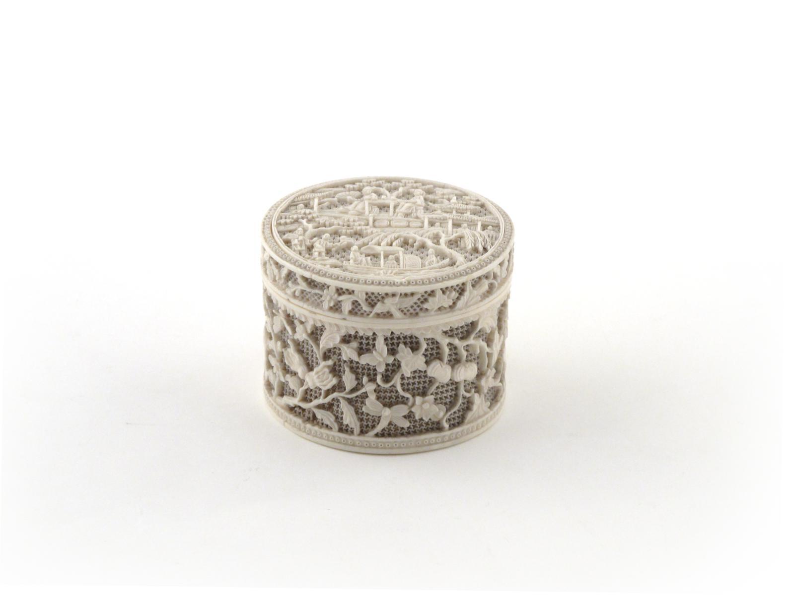 A Chinese Canton carved ivory cylindrical box and cover 19th century