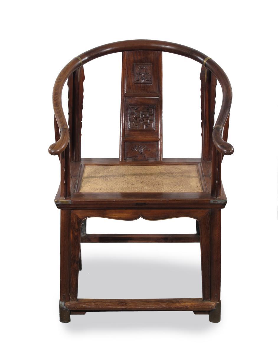 A Chinese ironwood or tielimu horse-shoe shaped arm chair 19th century or earlier