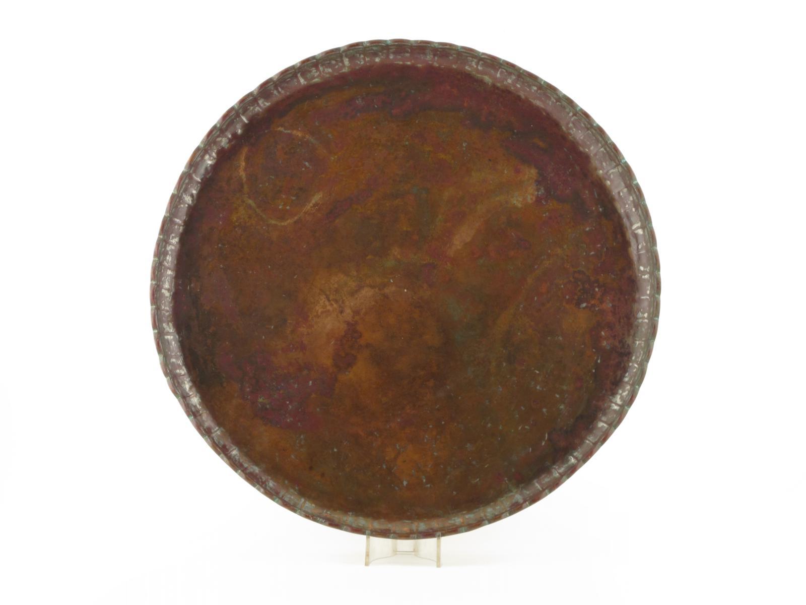 A large Middle Eastern copper dish 19th century or earlier