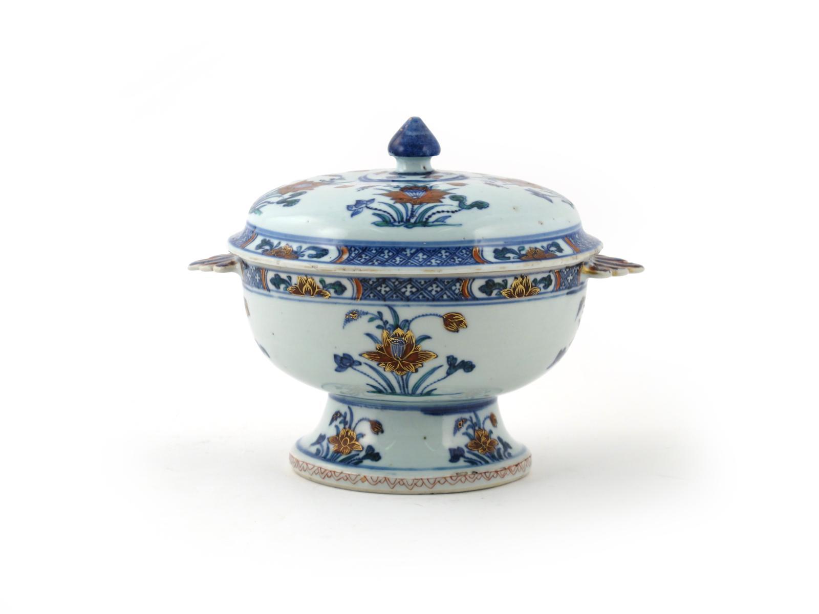 An unusual Chinese two-handled polychrome tureen and cover 18th century