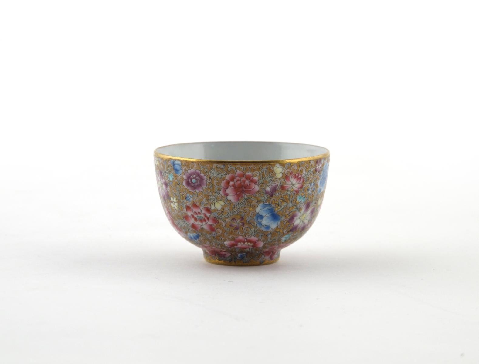 A Chinese millefleurs teabowl Daoguang seal mark and perhaps of the period