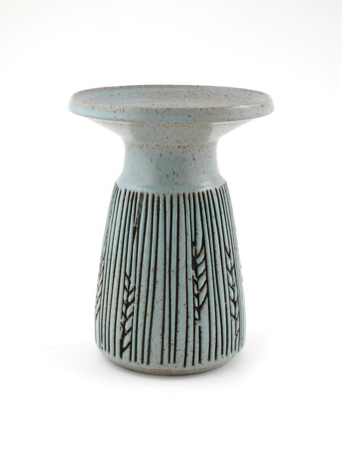 A Poole Pottery Atlantis vase by Carol Kellett, incised decoration glazed speckled blue impressed and incised marks, minor restoration to top rim, 18.5cm. high