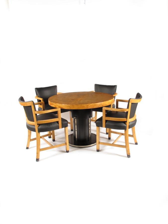 An Epstein style Art Deco satin birch table and four chairs