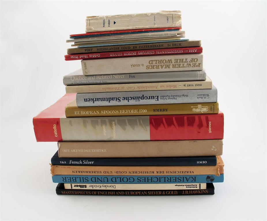 Foreign silver, a collection of volumes including: 18 general reference books and pamphlets on European silver; Emery, J., European Spoons before 1700; Poincons D'Argent by Tardy; Merken van Amsterdamsche Goud-en Zilversmeden, together with Quebec and Related Silver by R.A.C.Fox. (22)