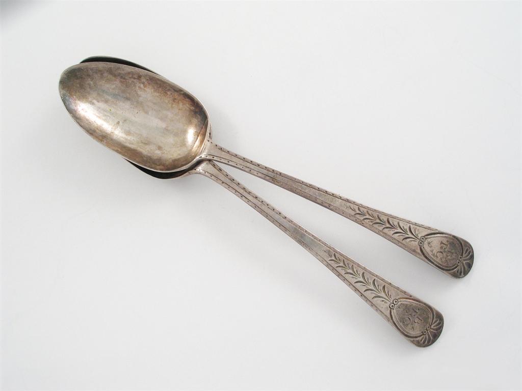 A pair of George III bright cut table spoons
