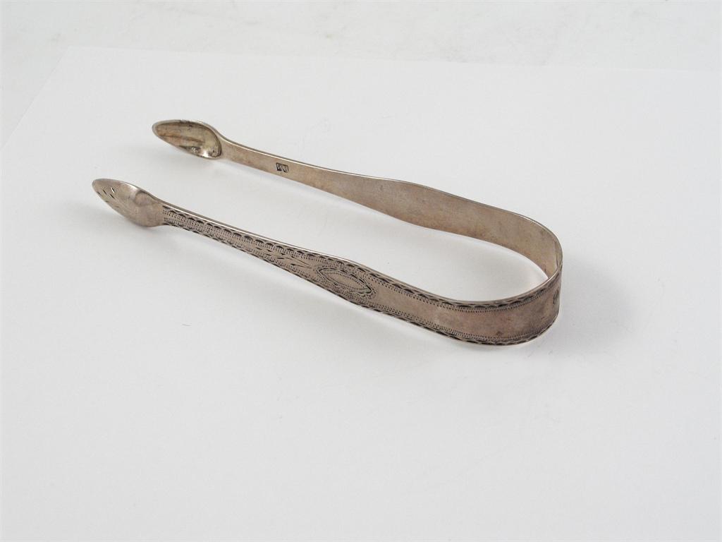 A pair of George III Scottish bright cut sugar tongs