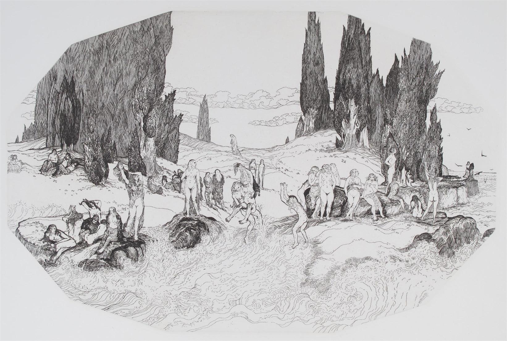 Wenzel August Hablik (German 1881-1934) Maidens in a landscape and six further etchings All...