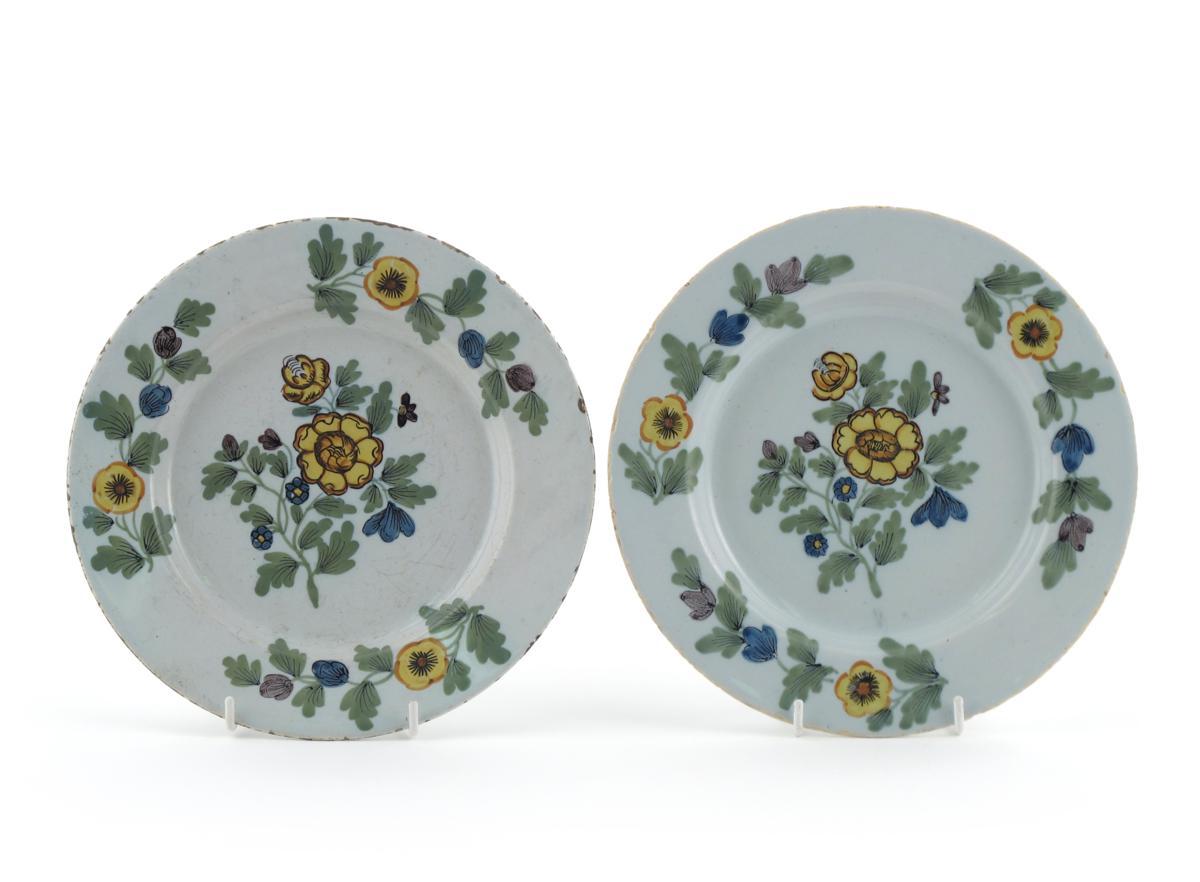 A pair of Bristol delftware polychrome plates 18th century