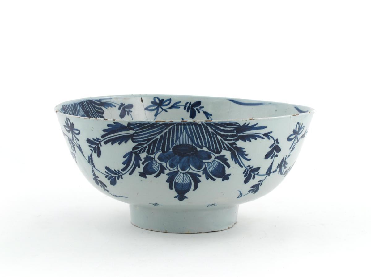 A large delftware blue and white bowl 18th century