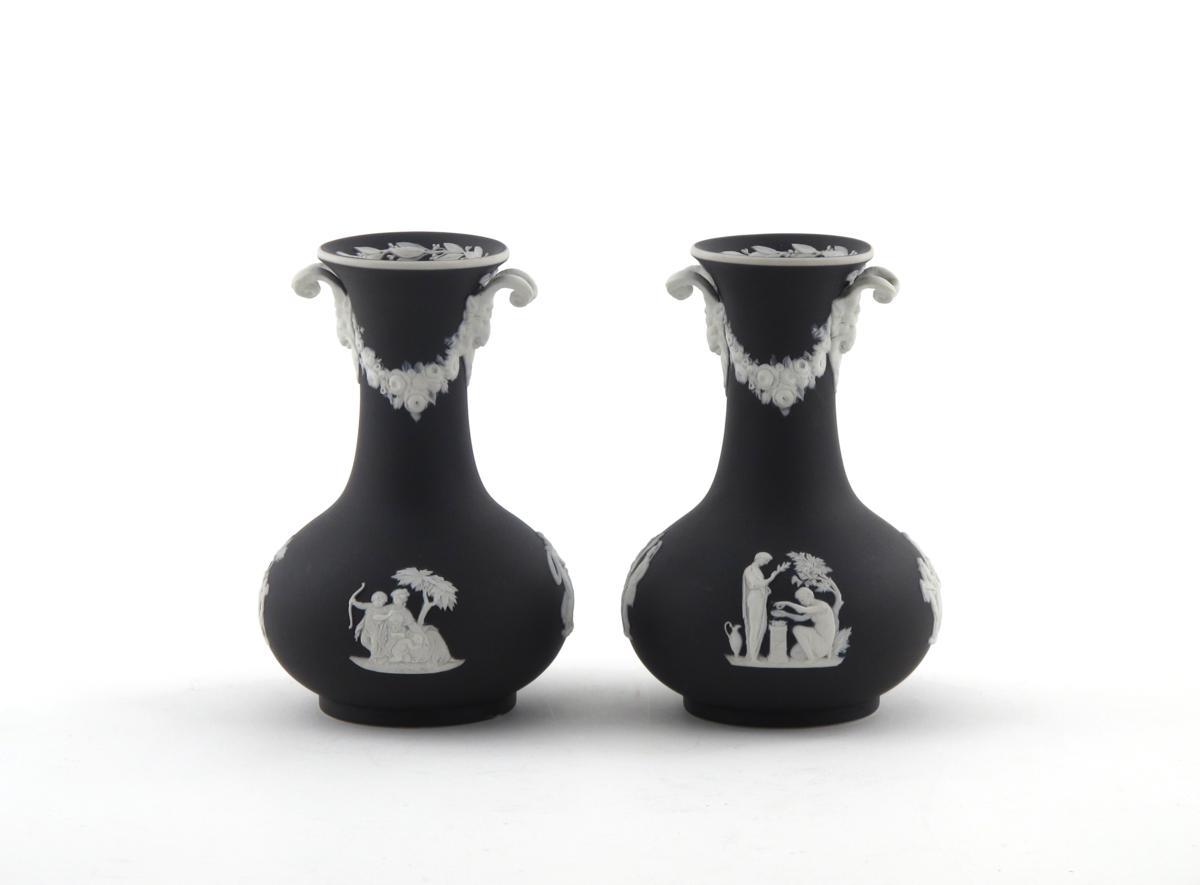 A pair of Wedgwood black Jasperware vases 1st half 19th century