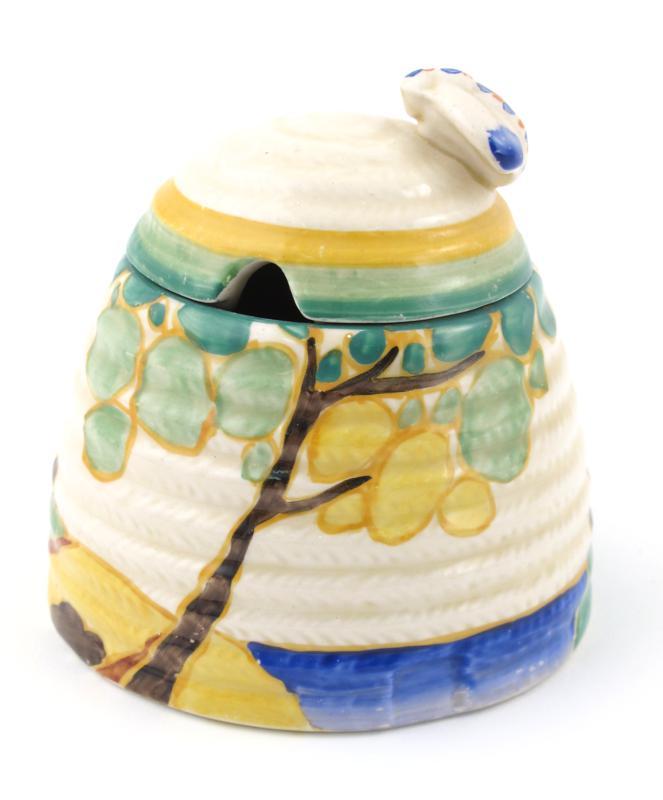 'Secrets' a Clarice Cliff Fantasque Bizarre Beehive honey pot and cover