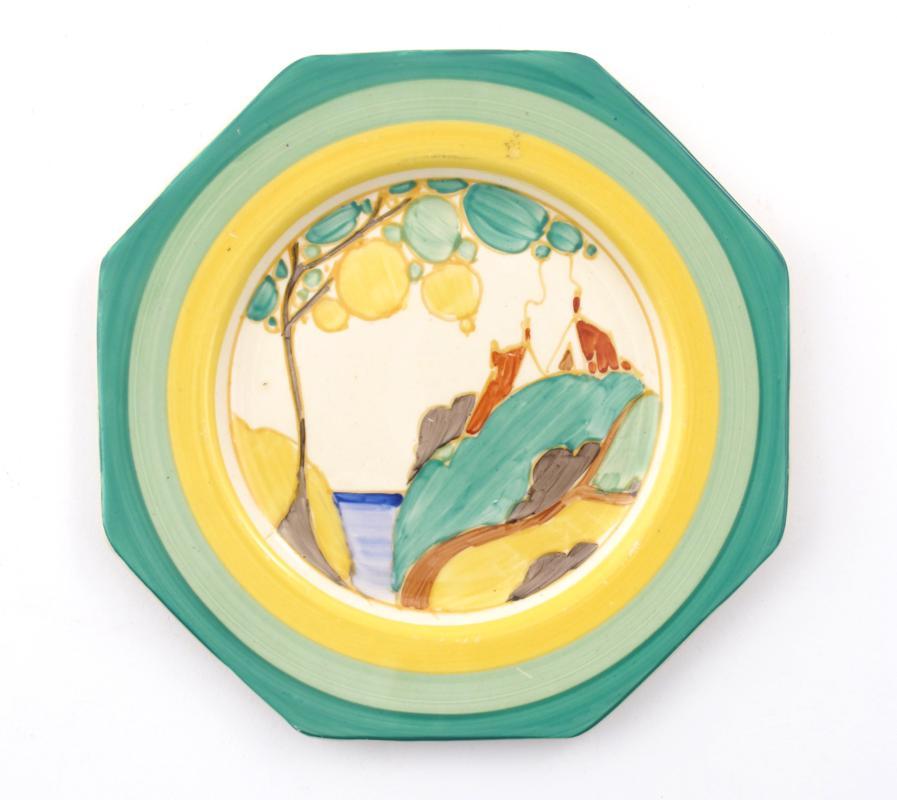 'Secrets' a Clarice Cliff Bizarre Octagonal side plate painted in colours