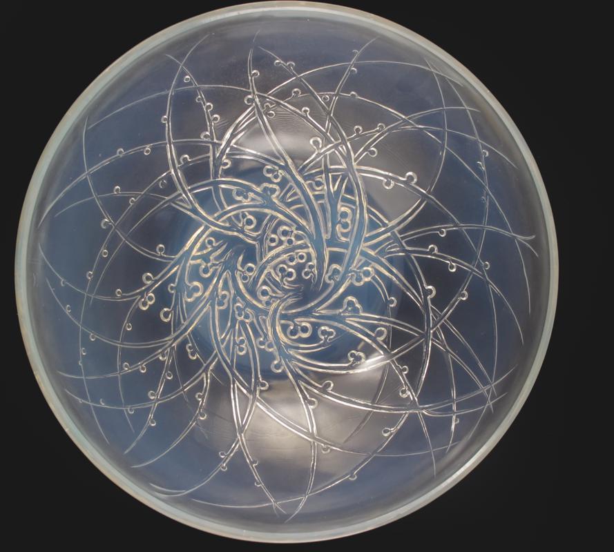 'Graines D'Asperges No.1' no.3220, a Lalique opalescent glass bowl, designed by Rene Lalique, moulded R Lalique to the well 24cm. diam.