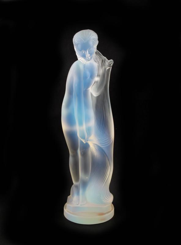 An Etling opalescent glass figure of a woman