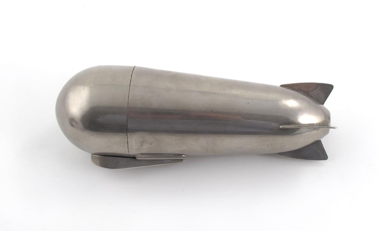 A German chromed metal novelty Zeppelin cocktail shaker