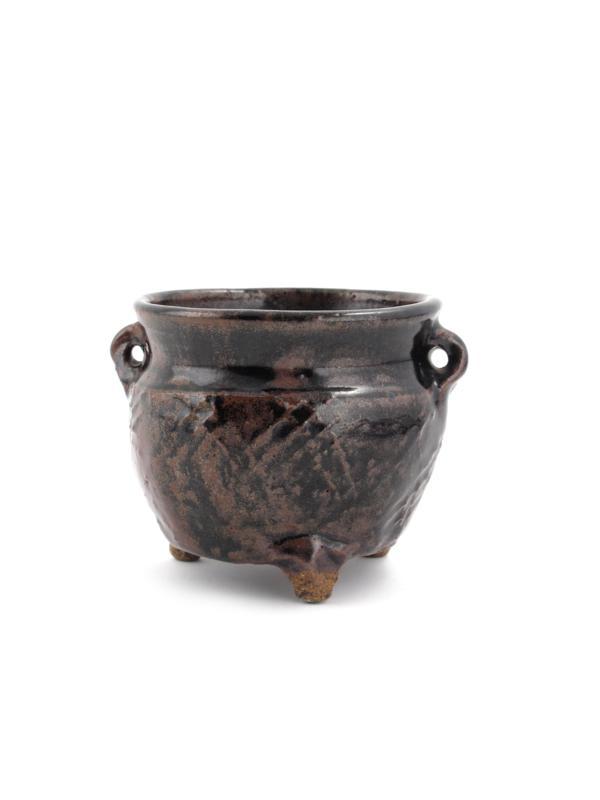 Shoji Hamada (1894-1978) an early stoneware tripod cauldron pot, with incised decoration, covered in a rich tenmoku glaze unsigned 9.5cm. high