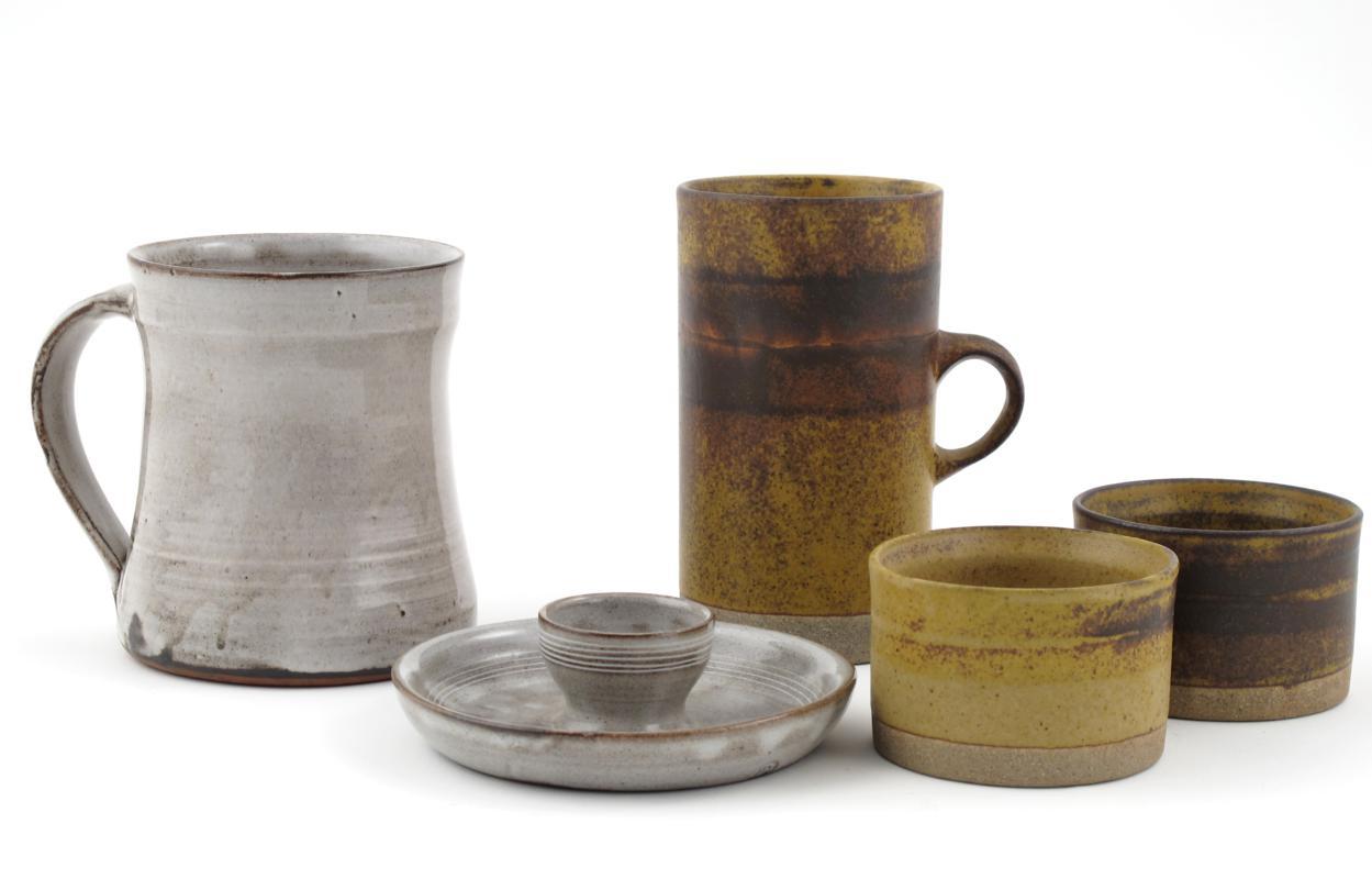 David Leach (1911-2005) a Lowerdown Pottery tin-glazed earthenware egg cup and tankard