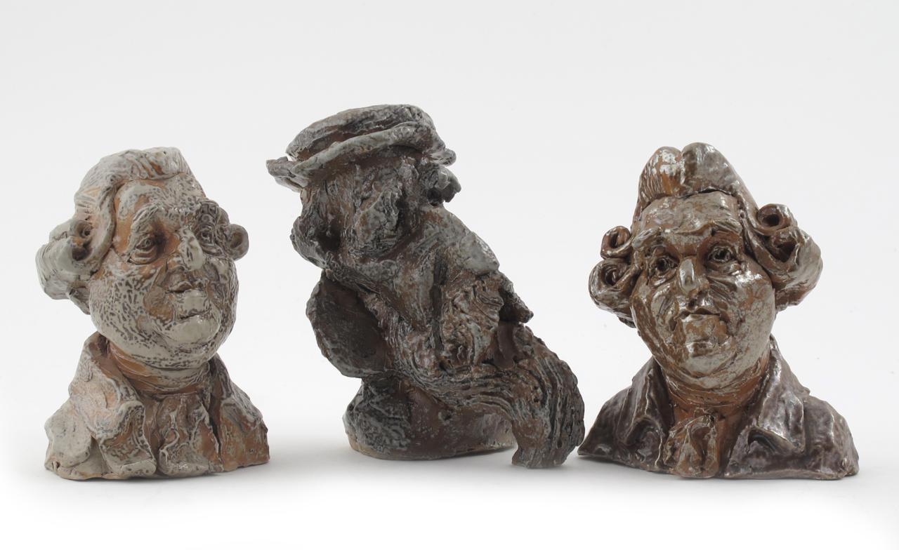 Roger Law & Pablo Bach three salt-glaze stoneware busts