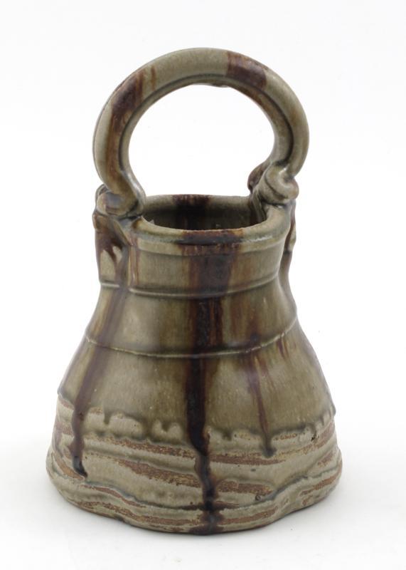 Takeshi Yasuda (born 1943) a stoneware bucket form with over-slung handle