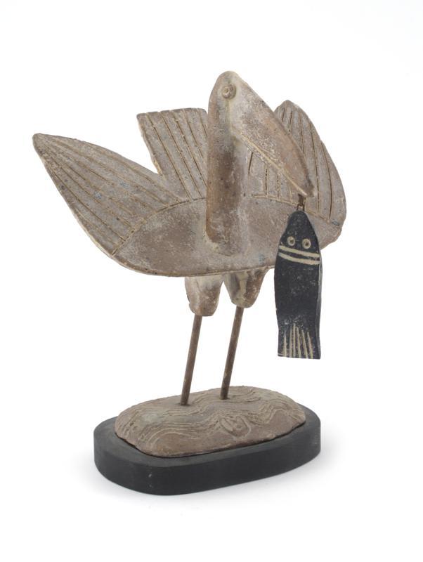 'Bird with Black Fish' a stoneware figure, painted signature and title to base 25cm. high