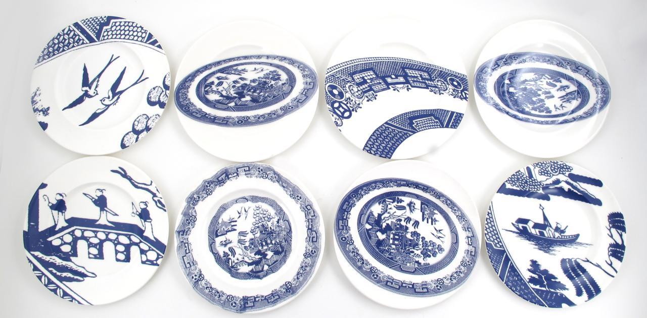 'Aesthetic Sabotage' a set of eight limited edition plates, printed in blue on a white ground printed factory mark, facsimile signature numbered 27cm. diam.