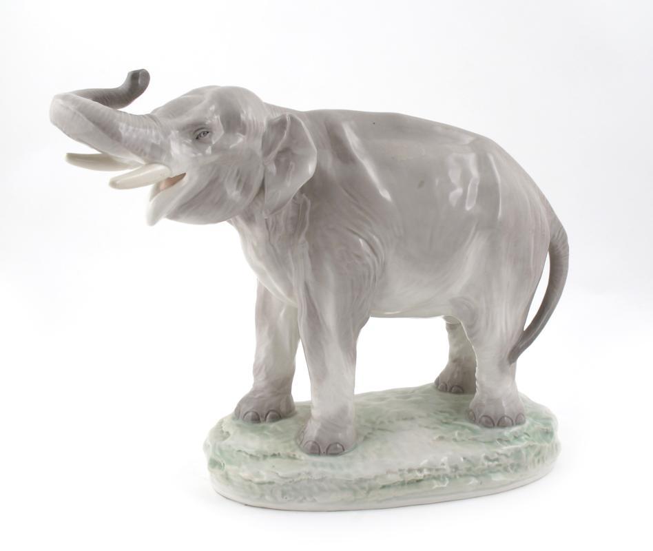 A large Amphora Pottery model of an elephant, glazed in colours impressed marks 40cm. high