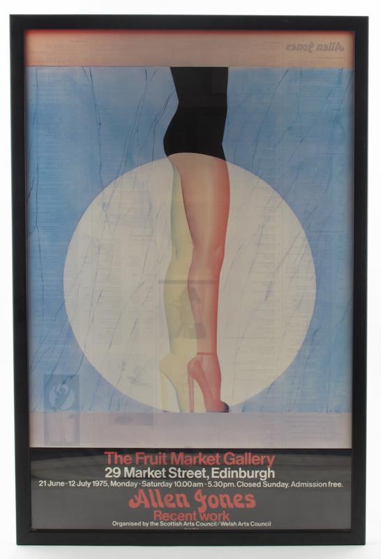 ‡Allen Jones Recent Work' 1975, a poster designed by Allen Jones, the reverse printed with design and biography of the artist, printed by Sinc ltd/TPS Ltd, framed and glazed to both sides 75 x 50cm