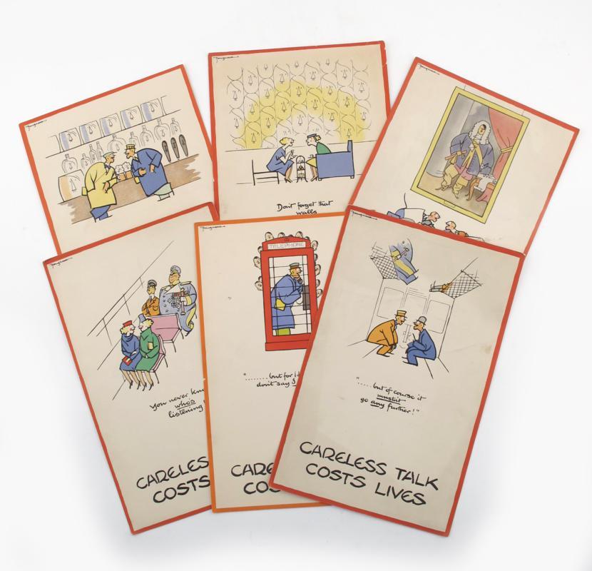 'Careless Talk Costs Lives' six lithographic posters, designed by Fougasse (Cyril Bird), signed in the print 32 x 20.5cm.