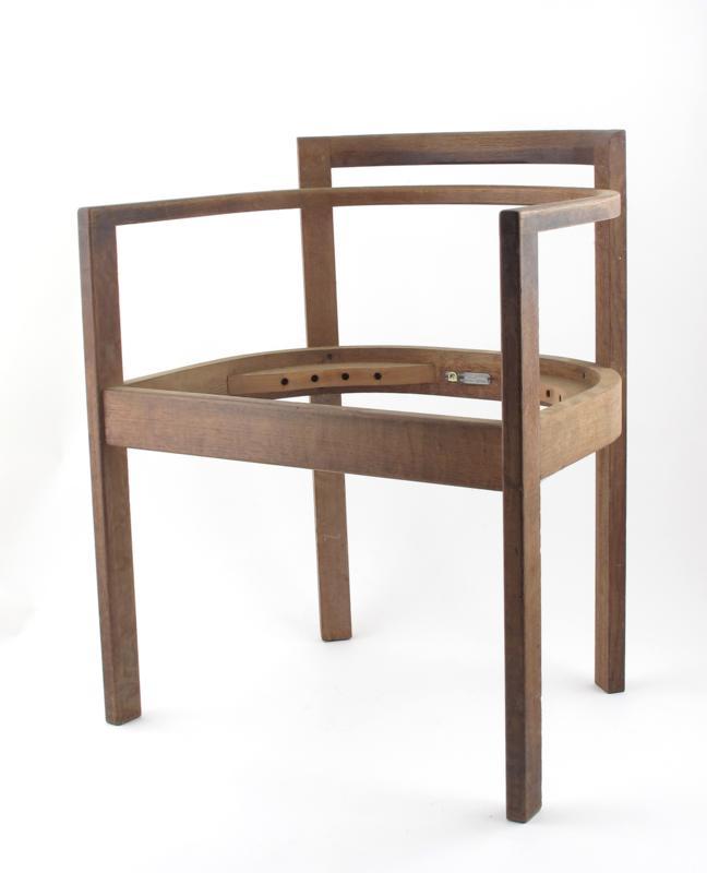 A Gordon Russell Workshops oak armchair, bent wood frame applied factory label 74cm. high
