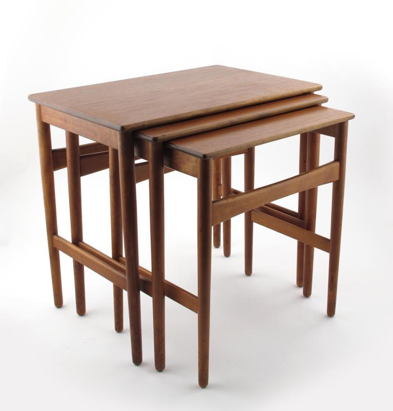 A nest of three Andreas Tuck, Danish teak tables, designed by Hans Wegner, stamped marks 48cm. high