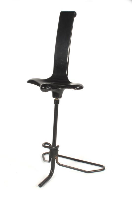 An Italian L'Appoggio bar stool, designed by Claudio Salocchi, 1970 enamelled steel and black plastic unsigned 118cm. high