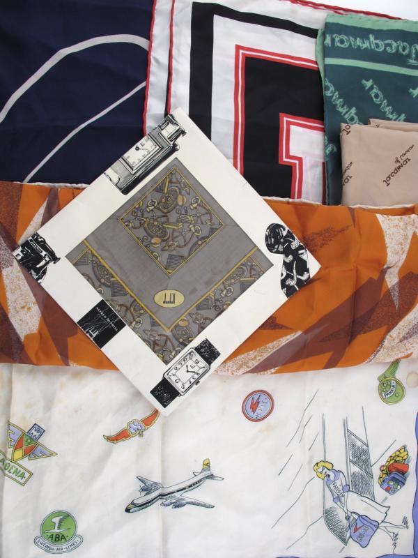 A silk scarf decorated with airline cipher and transport vignette, a BEA silk scarf and four other silk scarves
