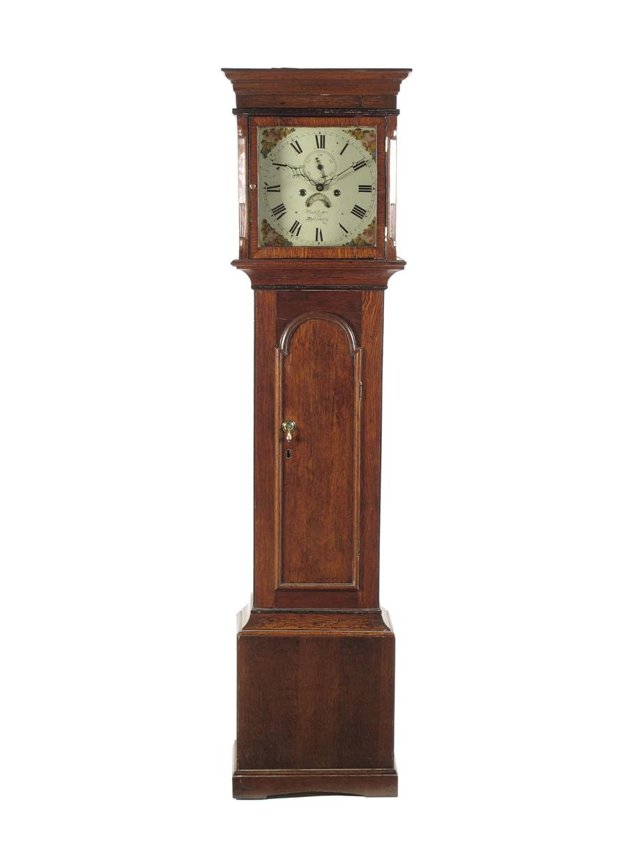 An oak longcase clock