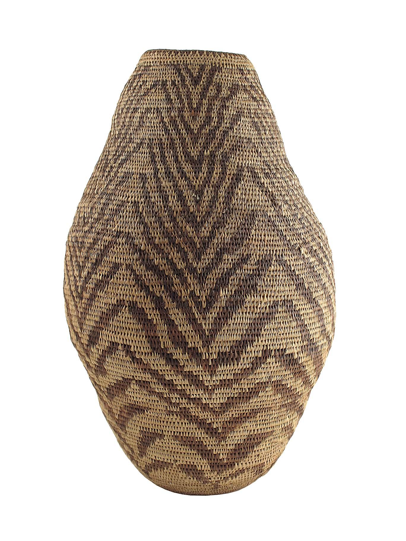 A basket, with stylized bird's wing decoration, possibly Native American Indian, Apache, 18.75in (47.5cm) h.