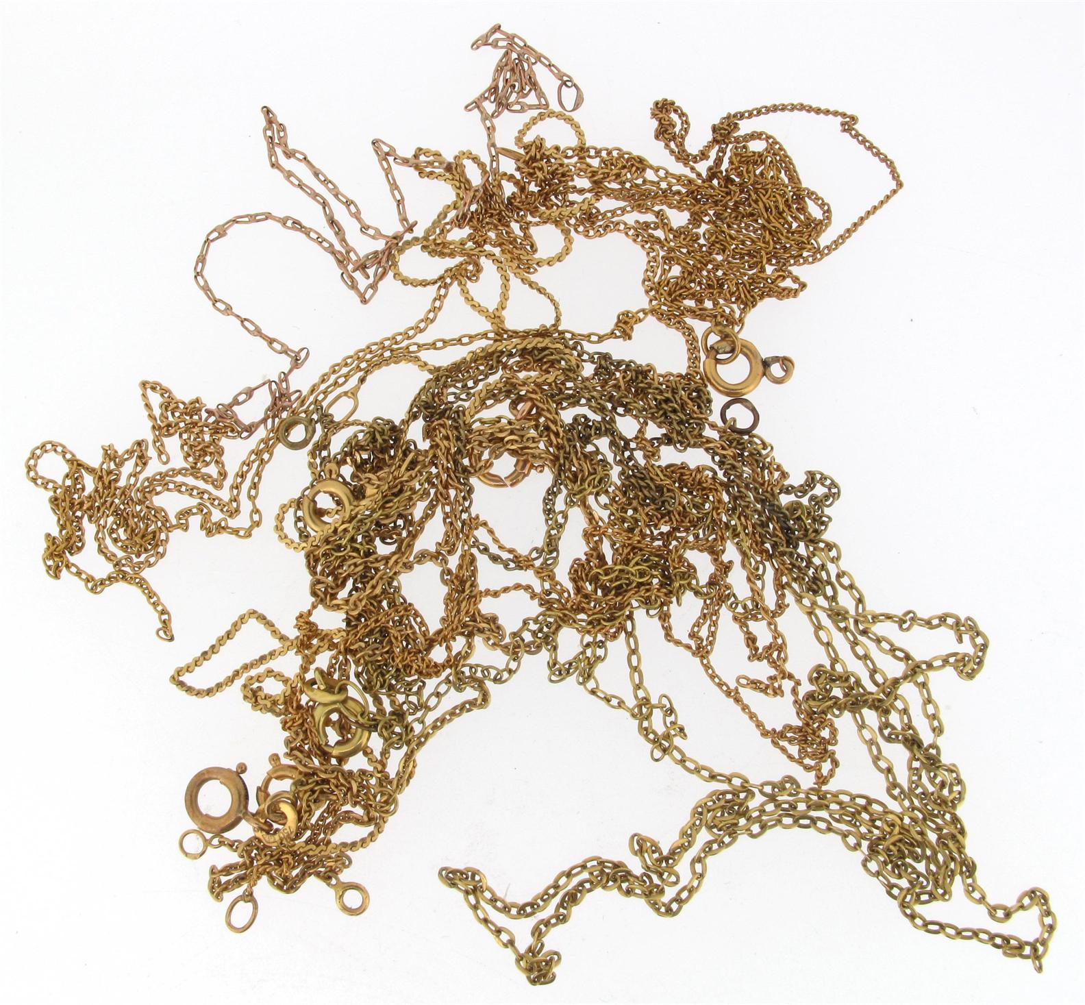 Assorted gold fine link neck chains. Approximately 16g in total.