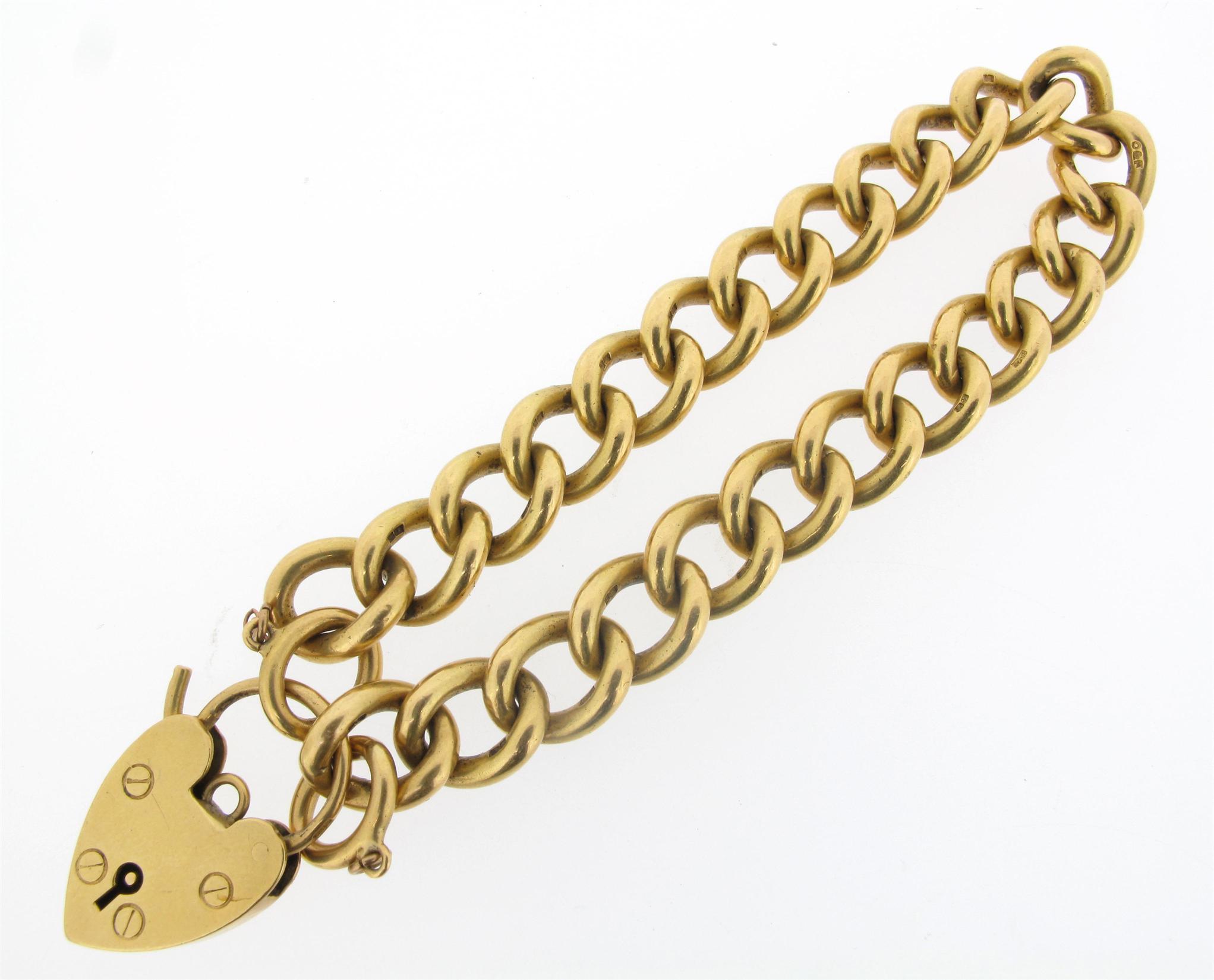 An 18ct yellow gold curb link bracelet, with 18ct yellow gold padlock clasp. 60g.