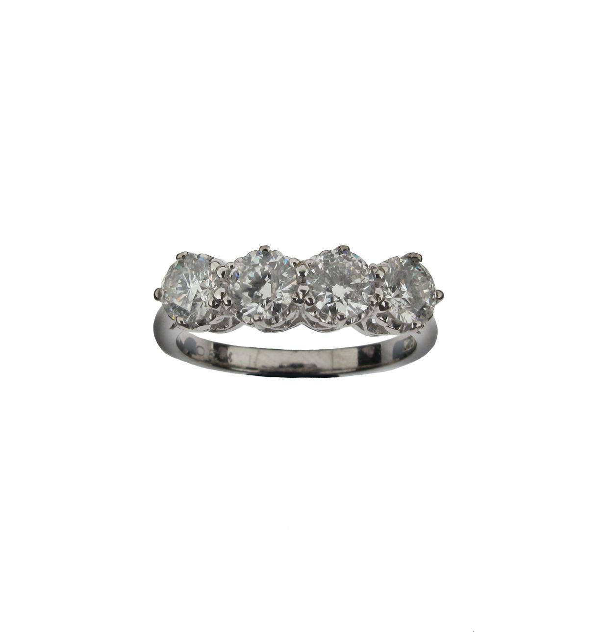 A diamond four stone ring, the round brilliant cut diamonds are set in white gold. Size P.