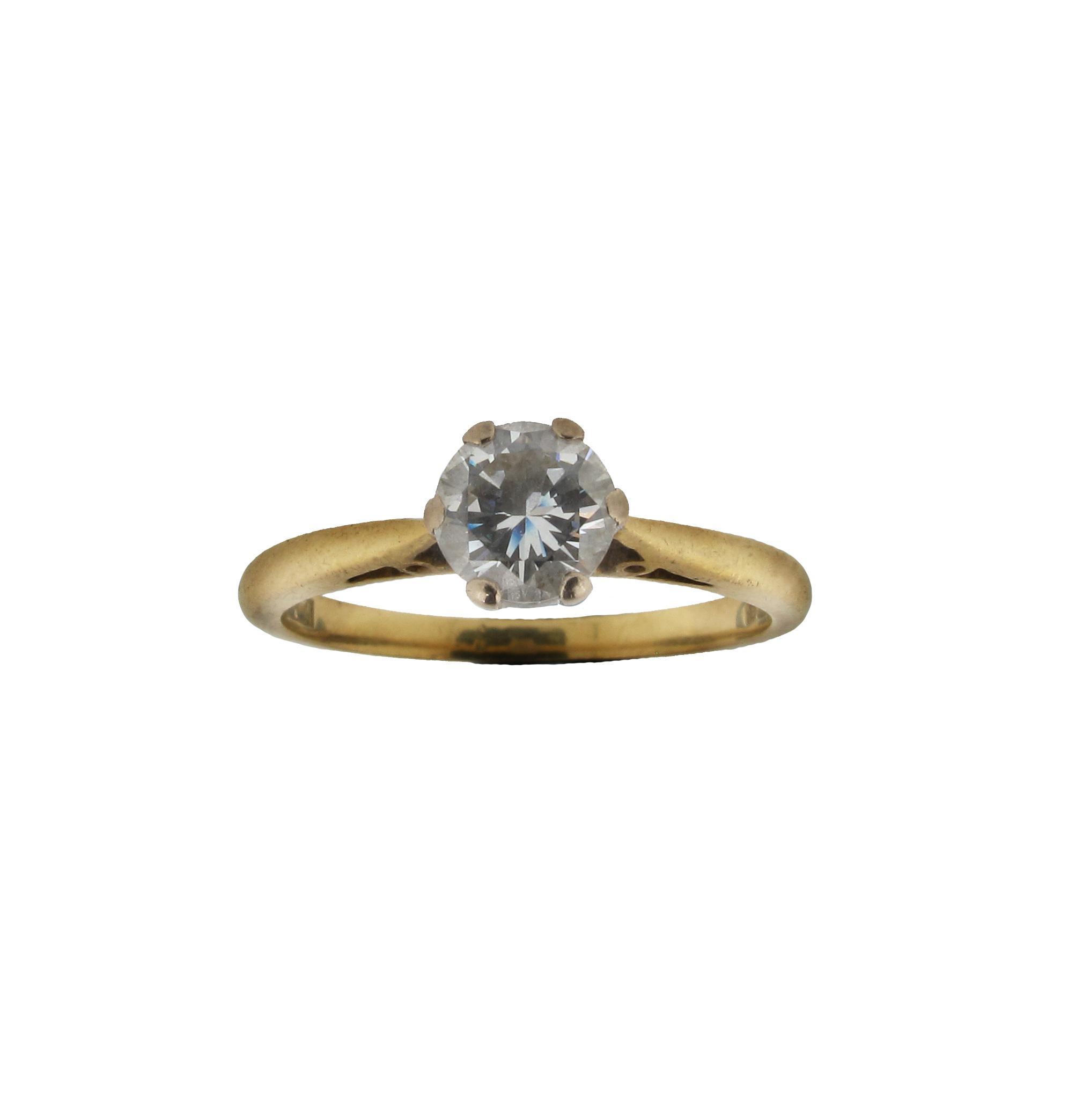 A diamond solitaire ring, the circular brilliant cut diamond is set in 18ct gold. Size L 1/2.