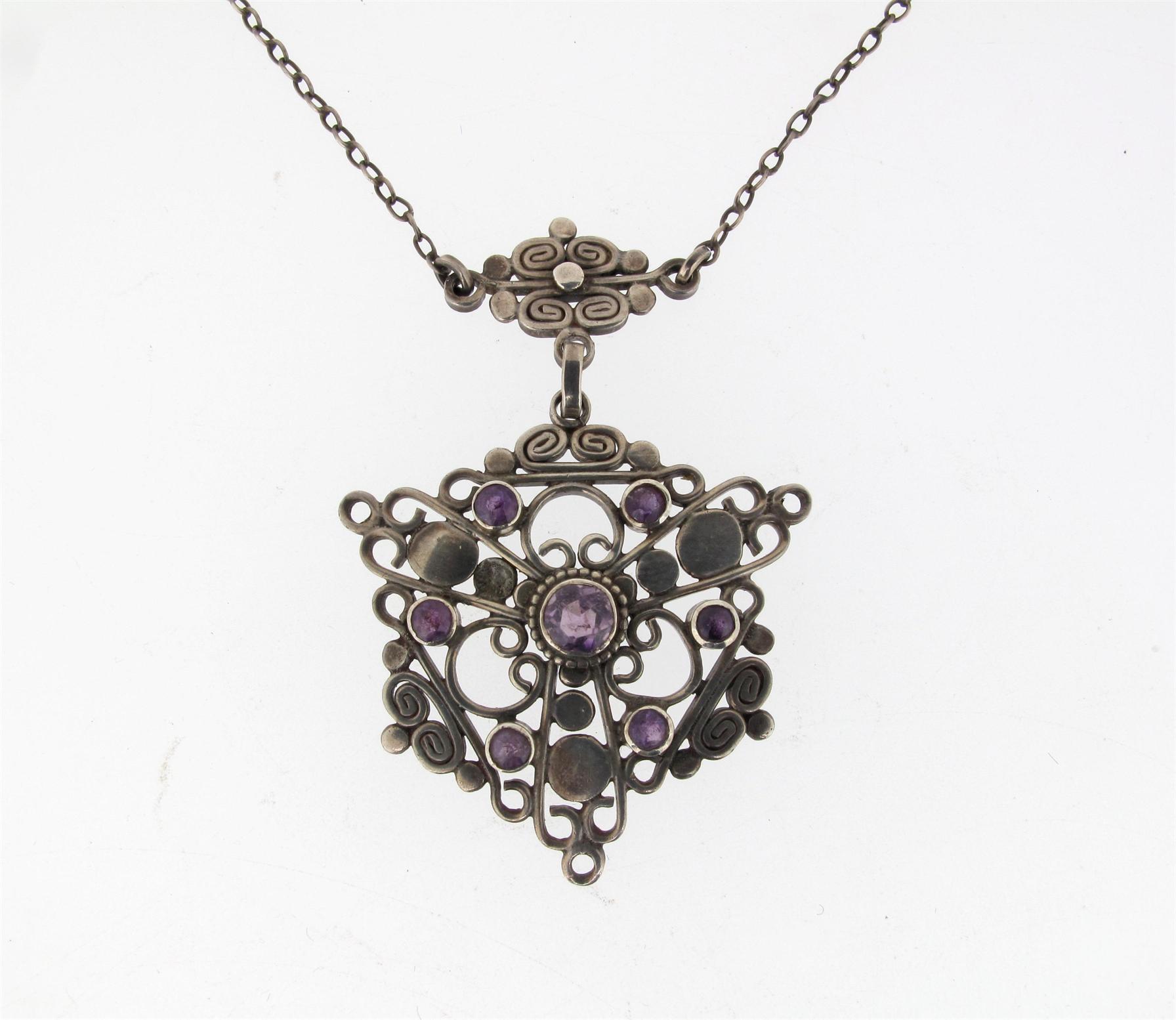 An amethyst Arts and Crafts silver pendant