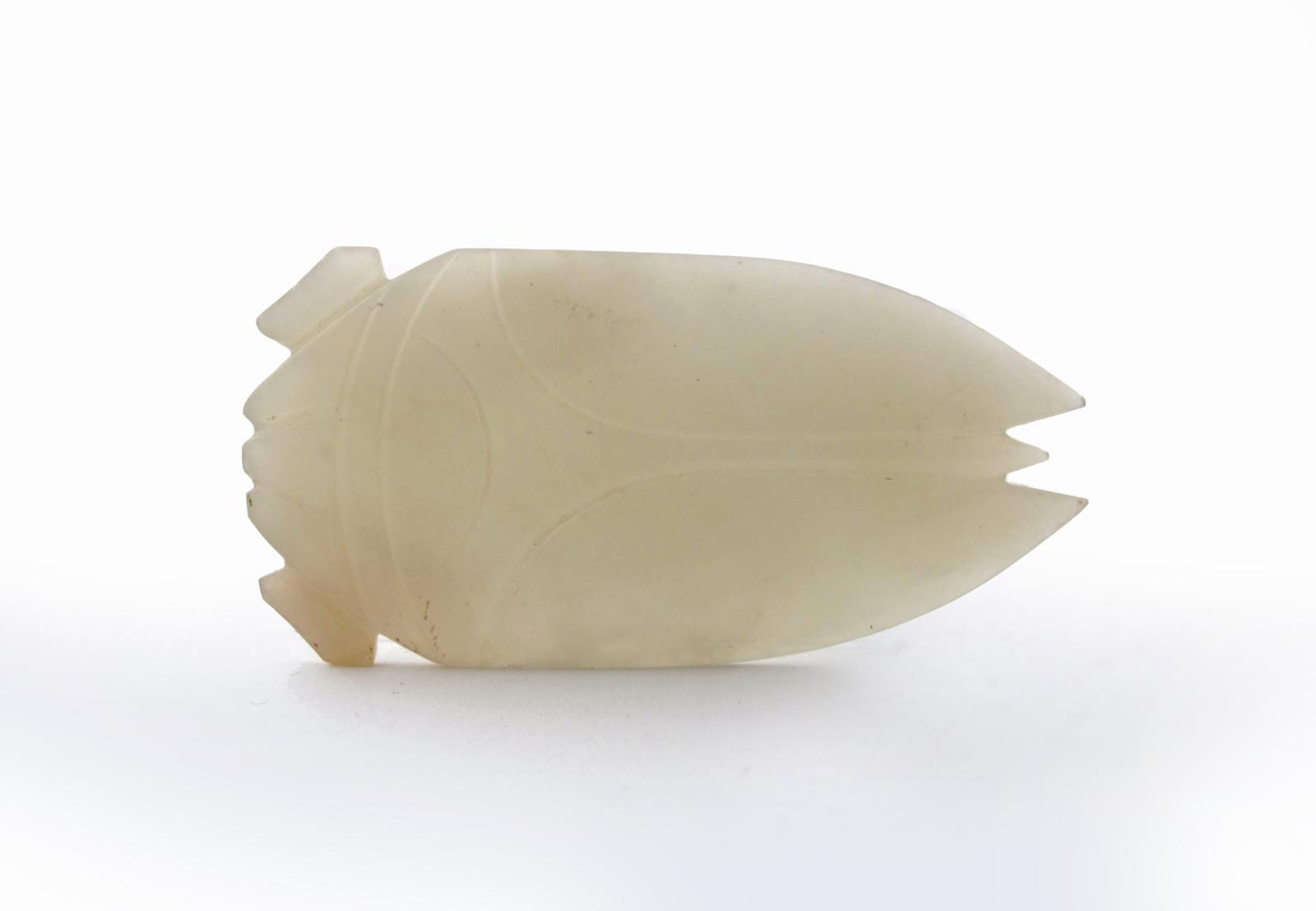 A Chinese pale celadon jade carving of a stylized cicada Han dynasty or later
