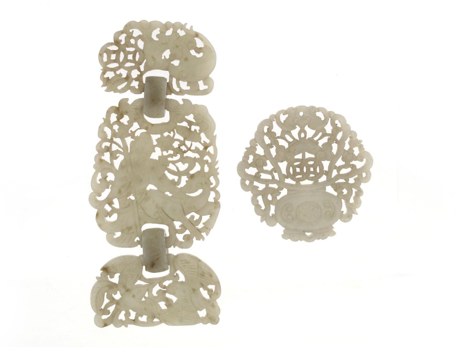 Two Chinese pale celadon jade reticulated plaques 20th century