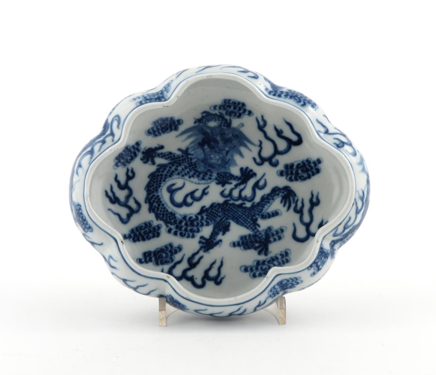 A Chinese blue and white lobed bowl