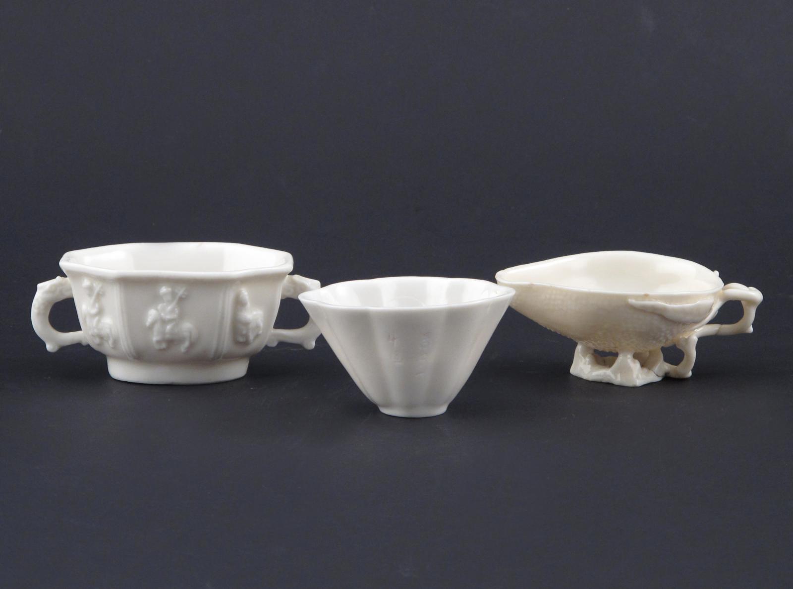 Three Chinese blanc de Chine libation cups c.1700