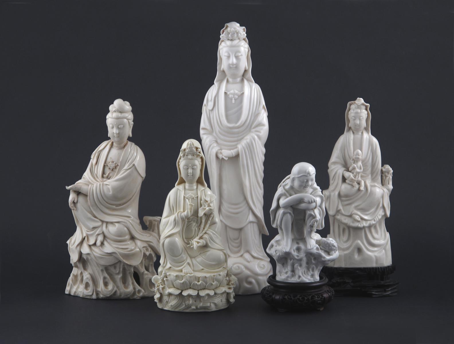 Five Chinese blanc de Chine figures 18th century and later