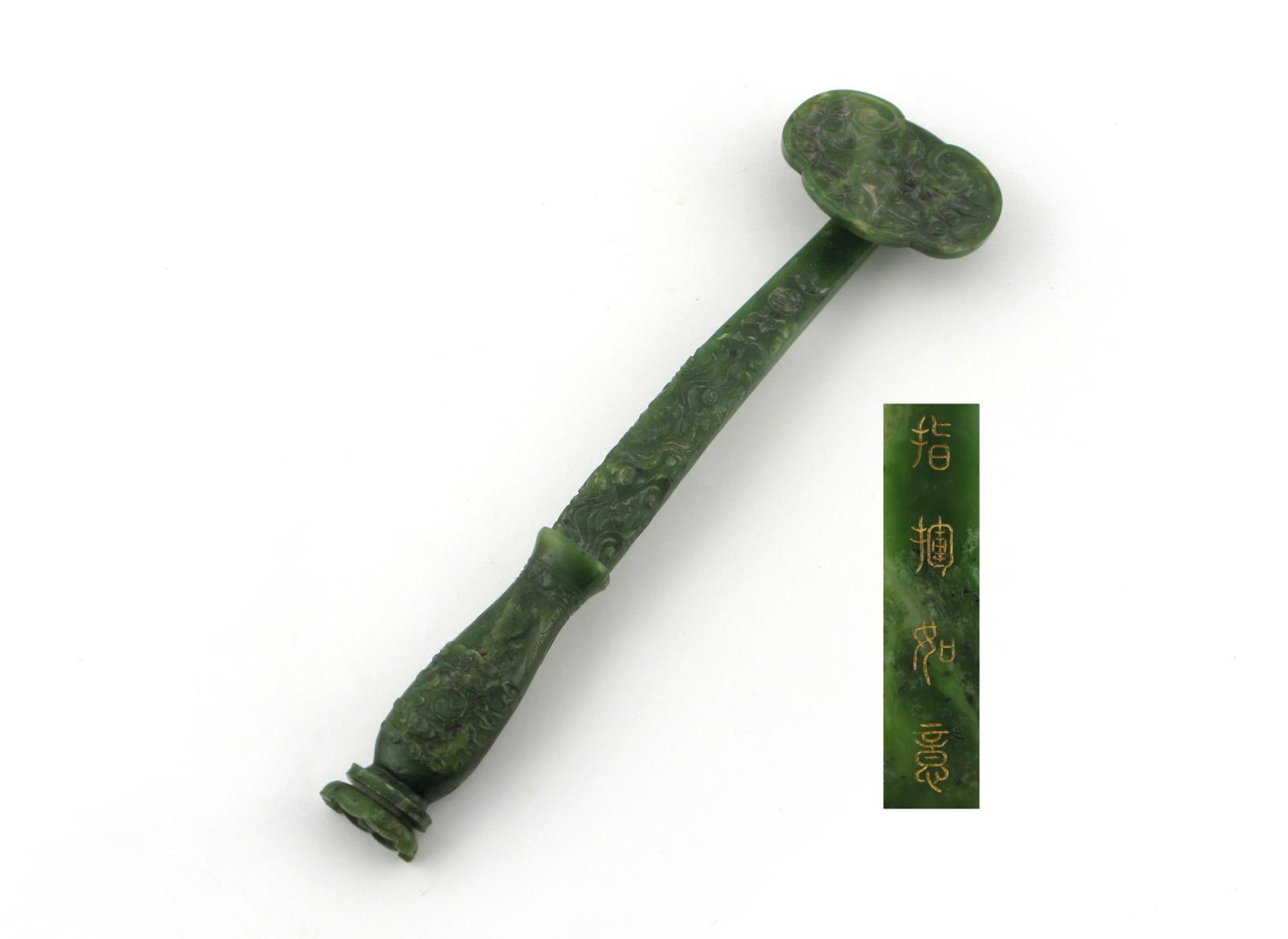 A Chinese spinach-green jade ruyi sceptre 20th century