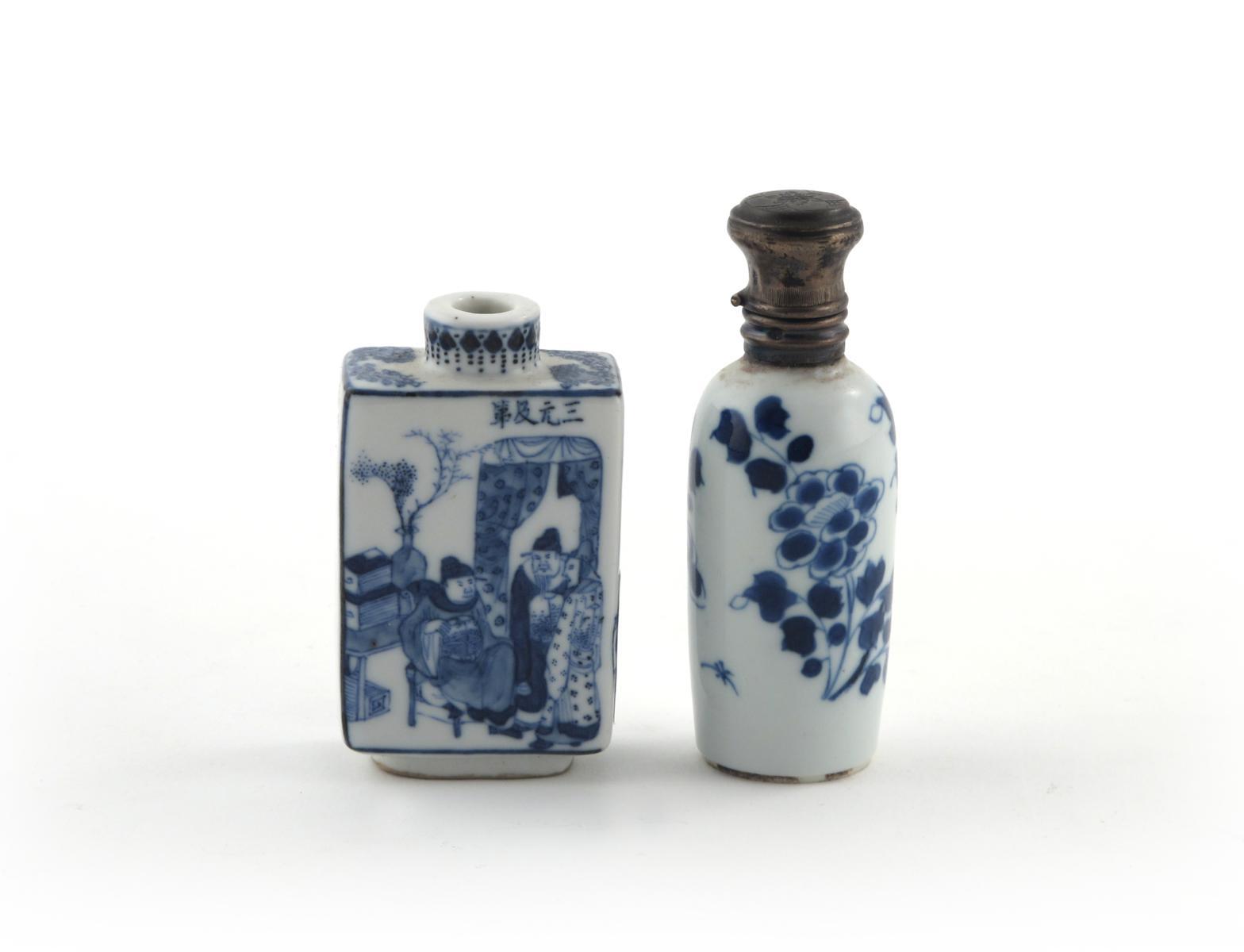 Two Chinese blue and white small flasks 19th century