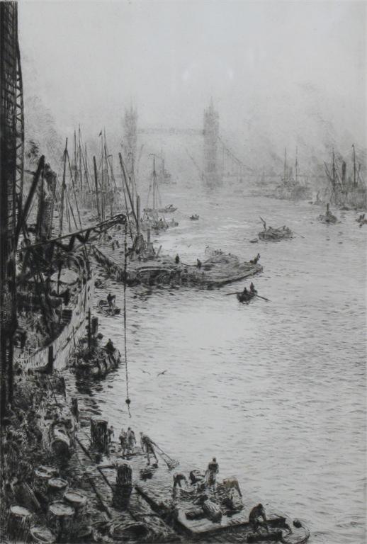 WILLIAM LIONEL WYLLIE (1851-1931): Tower Bridge. etching