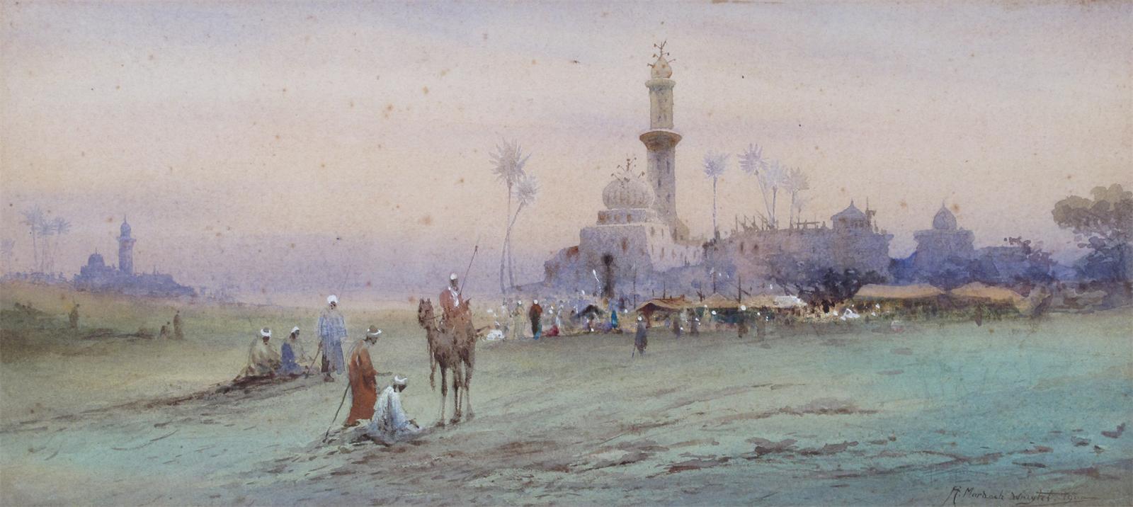 Robert Murdoch Wright (act. 1889-1962) An oasis at dusk Signed and dated 1900 Watercolour 23 x...